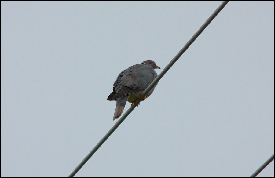 Larger than Rock Pigeon, with green back